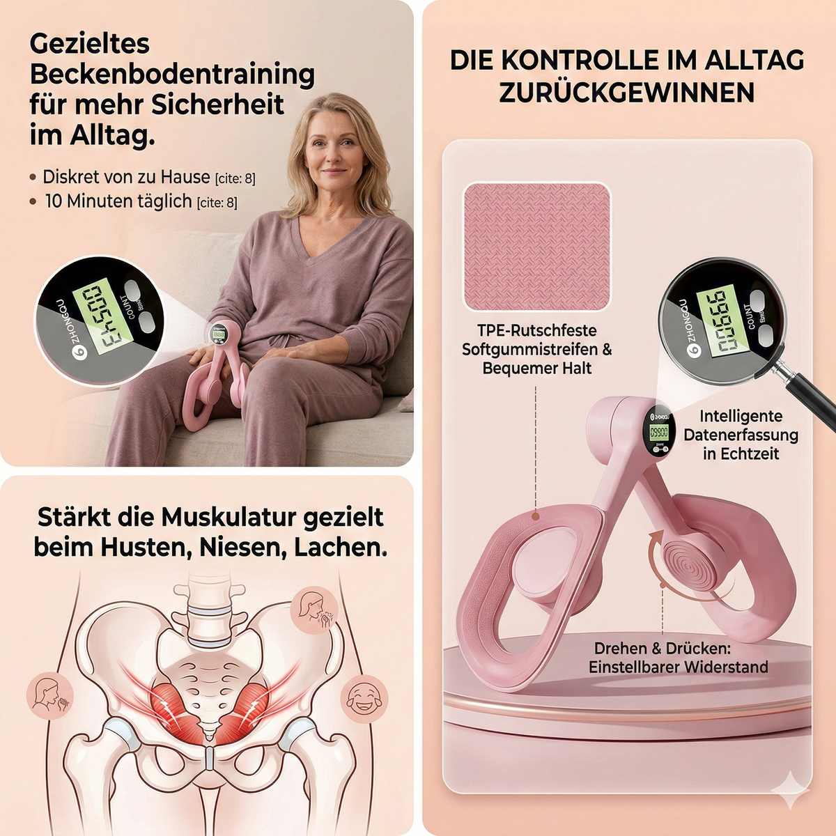 Ja, das Gerät dient der gezielten Stärkung der Muskulatur, um dir mehr Sicherheit bei alltäglichen Belastungen wie Husten, Niesen oder Lachen zu geben.